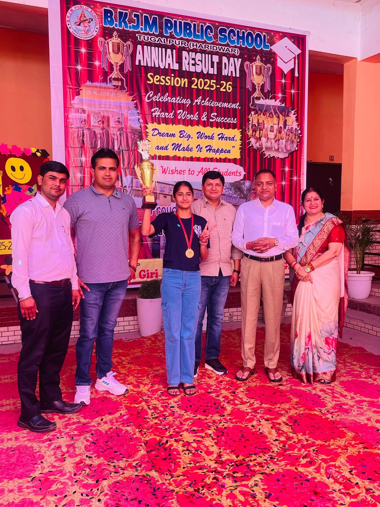 बी.के.जे.एम पब्लिक स्कूल में वार्षिक परिणाम घोषणा कार्यक्रम धूमधाम से सम्पन्न नसीम अंसारी हरिद्वार खानपुर। क्षेत्र के प्रतिष्ठित बी.के.जे.एम पब्लिक स्कूल, खानपुर में वार्षिक परीक्षा परिणाम घोषणा कार्यक्रम बड़े ही भव्य और गरिमामय वातावरण में आयोजित किया गया। कार्यक्रम में विद्यार्थियों, अभिभावकों और गणमान्य अतिथियों की उपस्थिति ने आयोजन को विशेष बना दिया। कार्यक्रम का शुभारंभ दीप प्रज्वलन के साथ हुआ, जिसका शुभारंभ खानपुर सहकारी समिति के चेयरमैन श्री सत्यवीर राठी ने किया। इस दौरान अधिवक्ता श्री पुनीत कंबोज भी विशेष रूप से मौजूद रहे। विद्यालय की प्राचार्या श्रीमती सुमन गिरी एवं प्रबंधन से जुड़े श्री मनोज गिरी की उपस्थिति ने कार्यक्रम की शोभा बढ़ाई। अतिथियों ने विद्यार्थियों का उत्साहवर्धन करते हुए उन्हें कड़ी मेहनत और अनुशासन के साथ आगे बढ़ने का संदेश दिया। उन्होंने कहा कि शिक्षा ही सफलता की कुंजी है और ऐसे कार्यक्रम विद्यार्थियों को प्रेरित करने में महत्वपूर्ण भूमिका निभाते हैं। इस अवसर पर विद्यालय के मेधावी विद्यार्थियों को उनके उत्कृष्ट प्रदर्शन के लिए सम्मानित किया गया। कक्षा में सर्वोच्च अंक प्राप्त कर प्रथम स्थान हासिल करने वाली छात्रा मानवी भाटी, पुत्री श्री गिरवर भाटी, को ट्रॉफी और मेडल देकर सम्मानित किया गया। उनकी इस उपलब्धि पर पूरे विद्यालय में खुशी का माहौल देखने को मिला। कार्यक्रम का संचालन सुव्यवस्थित ढंग से किया गया और अंत में विद्यालय प्रबंधन ने सभी अतिथियों, अभिभावकों एवं विद्यार्थियों का आभार व्यक्त किया। Post navigation रणसूरा पंचायत के मुकरपुर गांव में जलभराव से जनजीवन अस्त-व्यस्त, ग्रामीणों में भारी आक्रोश गडोवाली गांव में गंदगी का अंबार, नमाजियों और राहगीरों की बढ़ी परेशानी